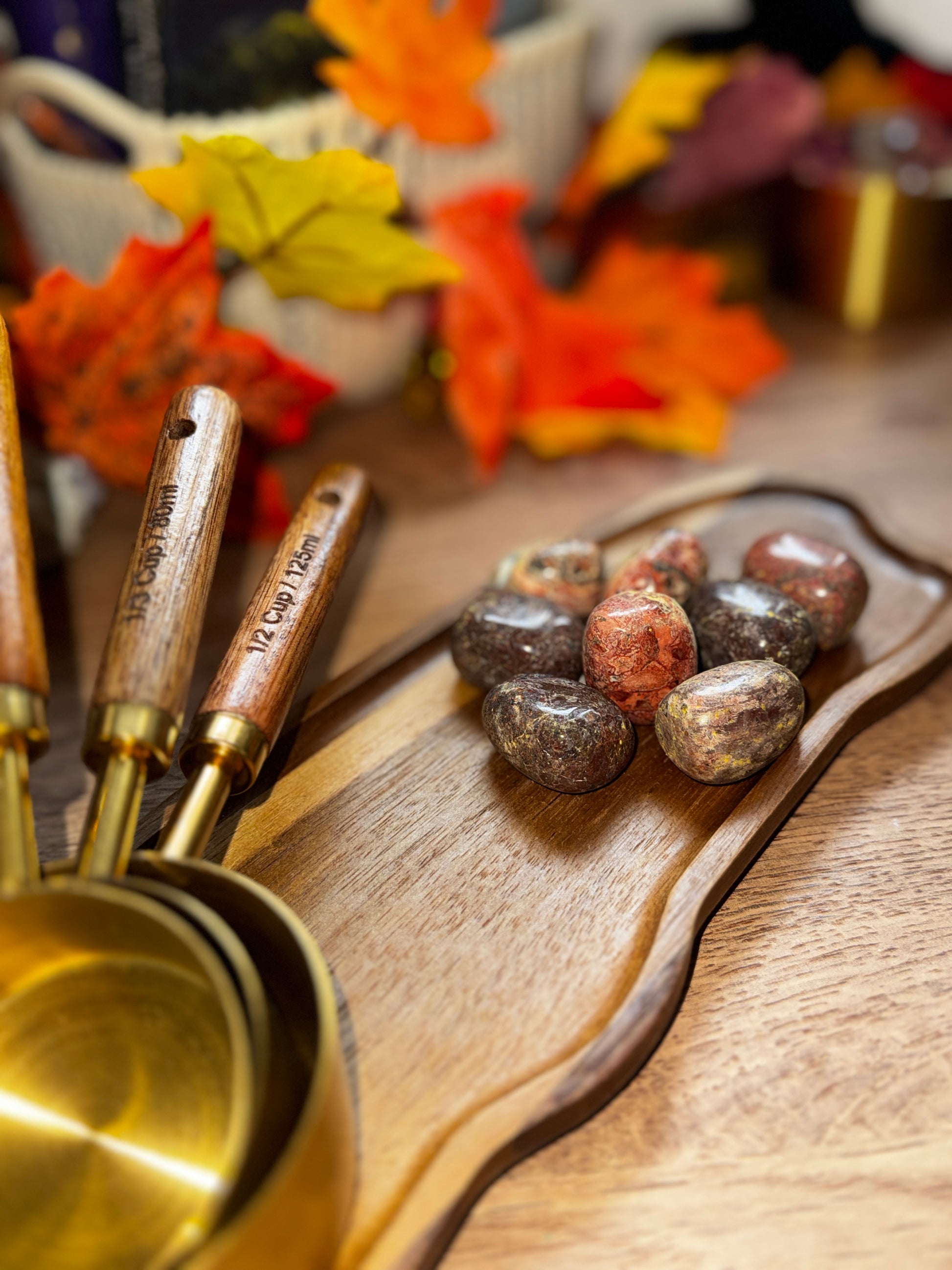 This jasper variety is most commonly sourced from Mexico and South America, where it forms through sedimentary layering and mineral replacement over long periods. The distinctive leopard-like spots are created by inclusions of various iron-rich minerals as the stone forms. Once mined, it’s tumbled into smooth, comfortable shapes, each piece a one of a kind blend of wild pattern and grounded energy.