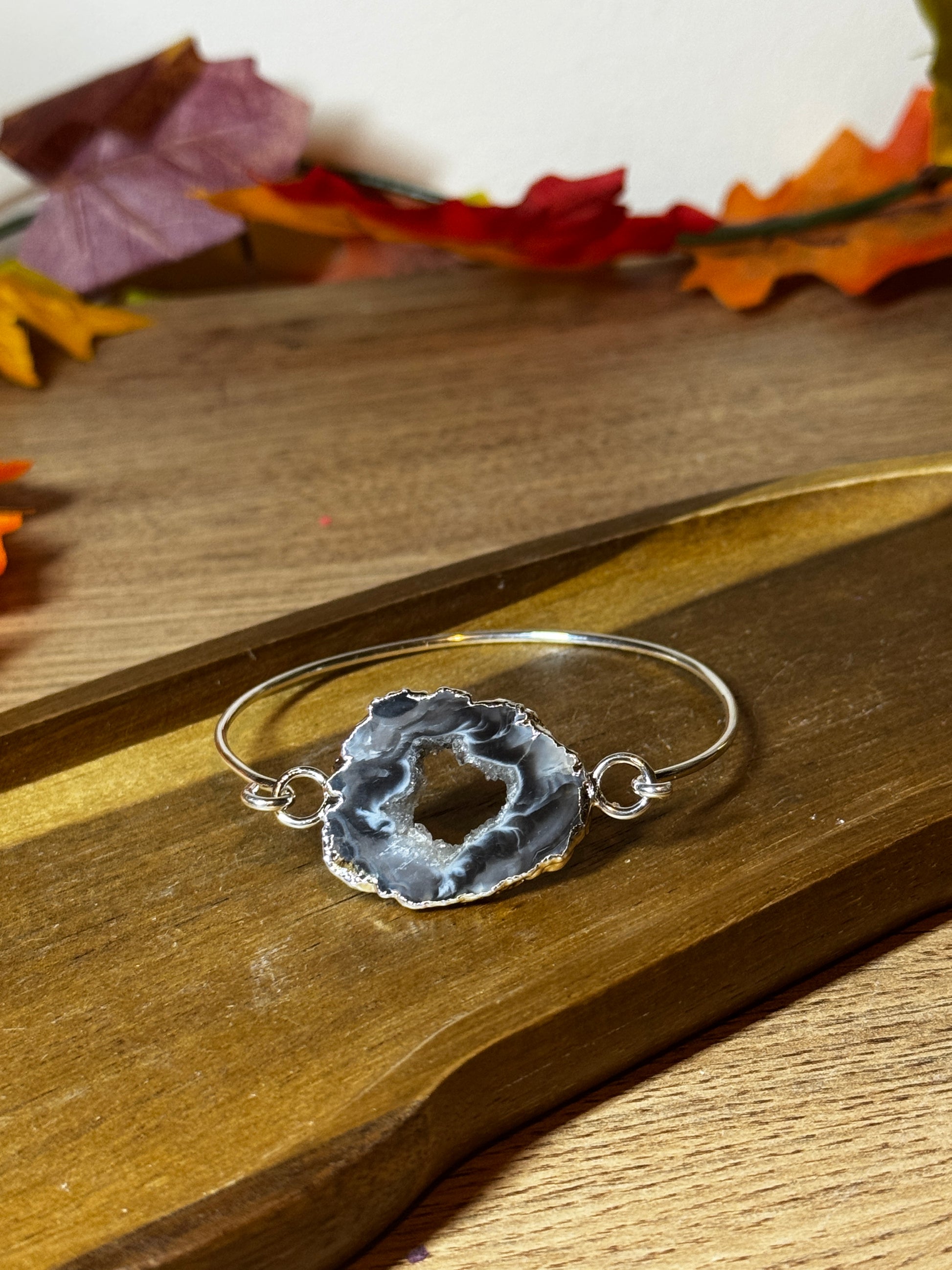 Silver Edge Agate Slice Bangle – Silver-Plated Bracelet